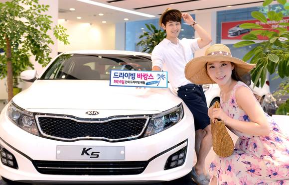 기아자동차는 8월 1일부터 8월 6일까지 6일간 더 뉴 K5(30대), 뉴 쏘렌토R(30대), K3(30대), 올 뉴 카렌스(30대) 총 120대 중 1대를 선택해 이용할 수 있는 ‘기아와 함께하는 드라이빙 바캉스 이벤트’를 실시한다.