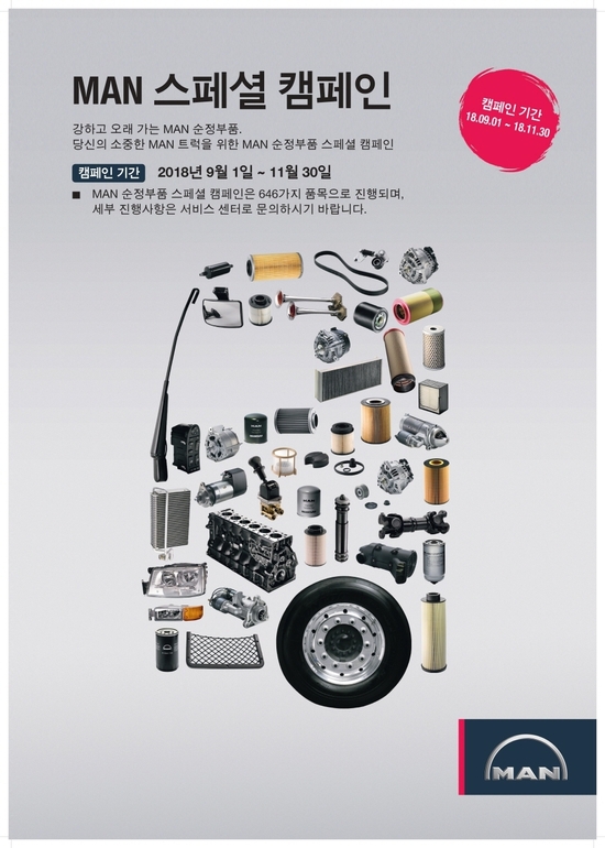 ‘MAN 순정부품 스페셜 캠페인’에 대한 보다 자세한 문의는 만트럭버스코리아 서비스센터 및 홈페이지, 고객지원센터(080-661-1472)를 통해 문의 가능하다.