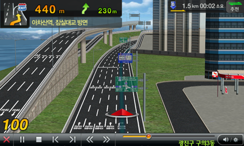 또한 T-PEG(실시간 교통상황)을 비롯, 다양한 도로 및 주행정보에서 시도경계 통과시 지자체 슬로건 안내멘트에 이르기까지 국내 주행에 필요한 90여개의 세부적인 컨텐츠는 물론 DMB와 같은 편의사양도 갖추고 있다.