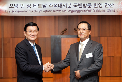 이 자리에서 구자열 회장은 “한국과 베트남은 경제뿐만 아니라 문화, 사회 등 다방면에서 상호 발전을 위해 협력해야 한다”며 “명예영사로서 상호 이해와 상생발전의 기회를 모색하기 위해 최선을 다하겠다”고 말했다. 또한 “베트남 경제는 최근 10년간 연평균 7.2%의 성장률을 기록할 정도로 경이적인 성장추세를 보였다”며 “앞으로도 한국 기업들이 베트남 경제 발전을 위해 더 많은 역할을 해야 할 것”이라고 말했다. 이에 대해 쯔언떤상 주석은 “LS전선은 베트남 진출 외국 기업의 모범으로, 경제발전에 많은 기여를 해 왔다”며 “앞으로도 양국 경제 발전을 위해 노력해 주길 대한다” 고 화답했다. 구자열 LS전선 회장은 주한 베트남 명예영사로 2010년 취임 이래, LS-베트남 바둑챔피언쉽 2011 후원과 함께 베트남 65주년 독립기념일, 베트남 문화관광 페스티벌, 한국-베트남 친선의 밤, 한국 오피니언 리더 대상 현지 문화 체험 등 중요 행사를 지원해 왔다. 이날 만찬에는 한나라당 이병석 국회의원과 LG전자 구본준 부회장을 비롯한 정재계 인사 20여명과 베트남 팜빈민(Pham Binh Minh) 외무 장관등 베트남 정부 주요 인사 18명이 참석, 양국간 친선도모와 경제발전을 위한 시간을 가졌다. LS전선은 1996년 베트남에 진출, 현재 2개 현지법인에 600여명의 직원을 고용하고 있으며, 매년 3억 5천만달러(한화 약 3천 9백억원)의 매출을 올리며 경제발전 및 고용 활성화에 기여하고 있다. 또한 매년 한국 대학생 해외자원봉사단을 파견하여 민간교류의 축을 담당하고 있다. 이러한 공로를 인정받아, 올 3월 베트남 정부의 2등급 노동훈장과 베트남이코노믹타임스 선정 골든 드래곤 상을 수상했다. |