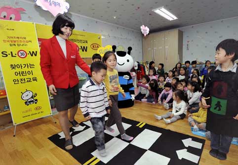 기아차 ‘찾아가는 안전교육’은 교통사고, 성폭력, 유괴 등 생활 속 다양한 위험 요소에 노출되어 있는 어린이들에게 위험을 인식할 수 있는 능력을 키워주고 안전사고를 예방하기 위해 지난해부터 실시하고 있으며, 올해는 신청을 받아 내년 2월까지 진행한다. 교육은 교통안전, 성폭력안전, 유괴안전 등 3가지 주제로 구성되어 있으며, 연령에 따라 미취학 아동과 취학 아동(저학년/고학년)을 구분해 강의하는 것은 물론 어린이들이 직접 참여하는 상황극 활동 등 각각의 눈높이에 맞춘 프로그램을 마련해 이해도를 높였다. 특히, 기아차는 올해부터 교육 대상을 서울, 경기지역에 위치한 아동복지시설 뿐만 아니라 해당지역 초등학교까지 확대해 보다 많은 어린이가 안전교육을 받을 수 있도록 했다. ‘찾아가는 안전교육’을 원하는 서울 및 경기 지역 아동복지시설이나 초등학교는 사단법인 한국생활안전연합에 전화(02-3476-0119)나 이메일(safia@chol.com)로 문의하면 된다. 사진은 아동복지시설 어린이들이 ‘찾아가는 안전교육’에 참여하고 있는 모습. |