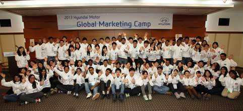 현대차는 한국·중국·인도 3개국의 대학생들이 마케팅 지식을 활발히 공유해 젊은 세대만의 창의성과 글로벌 마인드를 함양하는 자리를 마련하고자 지난 2011년, 2012년에 이어 3번째 ‘대학생 글로벌 마케팅 캠프’를 개최했다.