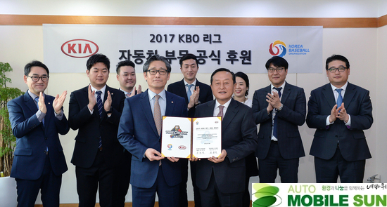 기아자동차는 28일 서울 압구정동 기아차 사옥에서 ‘2017 KBO 리그’ 자동차부문 후원 조인식을 가졌다. 기아차는 2012년부터 올해까지 6년 연속 KBO 리그를 후원히게 됐다.