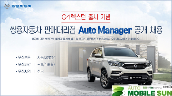 쌍용자동차가 영업소 확충 및 오토매니저(영업직 사원) 공개채용을 실시한다고 2일 밝혔다.