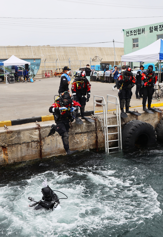 또, 동해해경청 특공대와 동해해양특수구조대, 해군 해난구조전대(SSU) 대원 60여 명이 물속에 들어가 폐어구와 폐타이어 등을 수거했다.