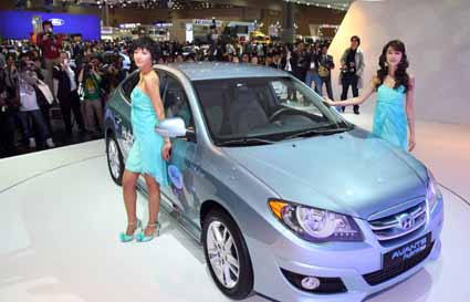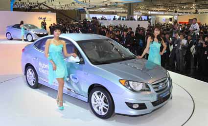 현대자동차는 2일, 일산 한국국제전시장(KINTEX)에서 열린 ‘2009 서울모터쇼’에서 친환경 브랜드 "블루드라이브(Blue Drive)"의 첫 시작인 아반떼 LPI 하이브리드와 플러그인 하이브리드 콘셉트카인 ‘블루윌(HND-4)’를 최초로 공개햤다. 국내에서는 처음으로 공개한 ‘블루드라이브’의 엠블렘은 지구를 이루고 있는 푸른 하늘과 물을 상징화한 블루의 푸른색상과 자연을 상징하는 녹색을 이용해 미래 지향적인 친환경 기술력을 표현했다. 현대차는 지난 1995년부터 2004년까지 하이브리드 양산기술 확보를 위한 1단계 사업에 돌입해 2005년부터 핵심부품의 국산화를 통해 하이브리드카의 양산체제를 구축했으며, 올해 7월, 그 노력의 첫 결실로 아반떼 LPI 하이브리드를 출시할 예정이다. 이번 서울 모터쇼를 통해 처음 공개한 아반떼 LPI 하이브리드는 현대차가 세계 최초로 청정연료인 LPG를 연료로 리튬 폴리머 배터리를 적용한 하이브리드 모델로 모터, 인버터, 배터리 등 핵심부품을 국산화했다. 현대차는 내년, 저속 구간에서 모터만으로도 주행이 가능한 중형급 하드타입 하이브리드카 양산에 돌입하게 되며, 2012년 말부터 하이브리드카와 전기자동차의 중간 단계인 플러그인 하이브리드의 전용 모델을 양산 및 판매할 계획이다. 이를 위해 현대차는 이번 모터쇼에서 플러그인 하이브리드카의 청사진을 보여줄 콘셉트카 ‘블루윌(HND-4)’을 세계 최초로 공개했다. ‘블루윌(Blue-Will, HND-4)’은 미래지향적인 디자인과 환경 친화적인 요소가 결합된 준중형 차세대 플러그인 하이브리드 전용 콘셉트카로 1회 충전만으로 최대 64km 주행이 가능하며, 전력 소모시에는 하이브리드 모드로 주행하게 된다. 이와 함께, 현대차는 2012년 연료전지차 소량생산의 조기 실용화를 목표로 그 동안 축적해온 기술력을 바탕으로 2009년 말부터 연료전지차의 시범운행에 돌입할 예정이다. |