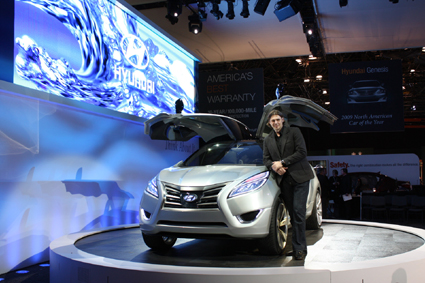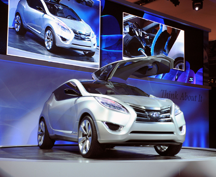 현대자동차는 9일(현지시간) 뉴욕 제이콥 제이비츠 컨벤션 센터에서 열린 "2009 뉴욕 국제 오토쇼"에서 크로스오버 콘셉트카 『NUVIS(누비스, HCD-11)』를 세계 최초로 공개했다. 현대차 미국디자인센터의 11번째 콘셉트카인 ‘누비스’는 도시적 감각을 반영한 유선형 디자인과 현대차의 하이브리드 기술이 어우러져 탄생한 CUV 하이브리드 콘셉트카다. 차명 ‘누비스(NUVIS)’는 ‘New Utility Vision’의 합성어로 차세대 CUV(Crossover Utility Vehicle)의 방향성을 제시하는 미래형 콘셉트카라는 의미를 담았다. |