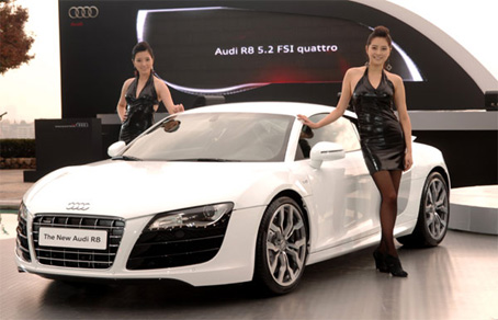 2년 만에 새 모델로 등장한 뉴 아우디 R8은 5천200cc V10 가솔린 직분사 FSI 엔진을 탑재했다. 뉴 아우디 R8에는 클러치와 기어변속이 전자적으로 제어되는 R-트로닉 자동변속기가 장착됐다. ▲최고출력 525마력, ▲최대토크는 54.1kg.m에 달하며, 정지상태에서 시속 100㎞까지 도달하는 데 3.9초, 200km까지는 12초가 걸린다. ▲최고 속도는 시속 316㎞. ☞판매 가격은 2억1천600만 원(부가세 포함)이다. |