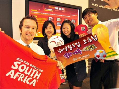 그 첫 이벤트로 기아차는 10일부터 다음달 3일까지 기아차 홈페이지(www.kia.co.kr 혹은 www.kia.com) 를 통해 "2010 남아공 월드컵 조추첨 결과 예측 이벤트"를 실시한다. 대한민국뿐만 아니라 전세계 기아차 현지 홈페이지에서 진행되며 영어, 독일어, 스페인어, 불어, 한국어 등 7개 언어로 된 인터넷 게임을 통해 응모할 수 있ek. 다음달 4일 발표되는 실제 월드컵 조편성 결과에 따라 최상위 게임 점수를 기록한 우승자를 선발해 월드컵 개막전 티켓을 비롯해 현지 숙박 및 항공권 등 2010 남아공 월드컵 관람 특전이 제공될 예정이다. 최종 선발 결과는 "기아 월드컵 마이크로 사이트(fifa2010.kiamotors.com)"를 통해 12월 18일 발표될 예정이다. 기아차 관계자는 "월드컵 최종 진출 32개국이 확정되는 11월, 전세계 축구팬들의 이목이 집중될 월드컵 조추첨 결과를 활용한 이벤트를 기획했다"며 "FIFA 자동차부문 공식 후원사로 활동하는 첫 월드컵이니만큼 이번 이벤트를 시작으로 다양한 월드컵 마케팅으로 축구를 통한 젊고 역동적인 기아차 브랜드 알리기에 박차를 가할 것"이라고 말했다. |