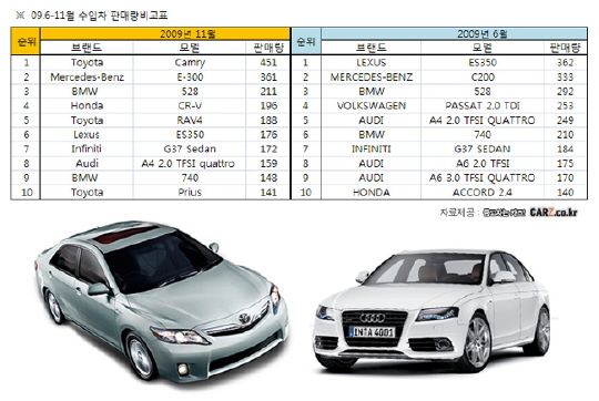 중고차사이트 카즈의 박성진 마케팅담당은 일본차가 강세를 보이는 까닭으로 가격 경쟁력을 뽑았다. "지난 9월 메르세데스-벤츠가 뉴 E클래스를 성능은 올리고 가격을 낮추어 내놓으면서 9∼10월 연속 판매량1위를 석권했던 것과 같이 토요타 캠리의 1위 등극 또한 가격으로 비교된다"고 말했다. |