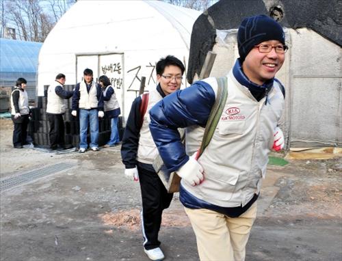 기아차는 19일 경기도 성남지점을 비롯한 기아차 12개 지점들이 소재 지역에서 각각 지역사회에 기여하는 봉사활동을 펼쳤다고 밝혔다. 기아차 국내영업본부가 중심이 되어 추진하는 "1지점 1봉사활동 캠페인"은 지점이 위치한 인근 지역사회를 위한 찾아가는 봉사활동으로 지역사회 일원으로서 기업의 사회적 책무를 다한다는 취지로 지난 10월 시작됐다. 3개월만인 19일 현재 210개 지점이 참여했으며 연말까지 기아차 312개 전 지점이 "1지점 1봉사활동 캠페인"에 동참할 계획이다. 참여한 지점들은 ▲지역 복지기관 후원 및 방문 봉사 ▲스쿨존 및 혼잡지역 어린이 교통안전 도우미 활동 ▲지역 내 소년소녀가장 및 불우이웃 돕기 성금 모금 ▲독거노인들을 위한 김장김치 담그기 봉사 ▲거리청소 등 환경정화 활동 ▲복지관 급식봉사 등 해당 지역사회에 필요한 다양한 봉사활동을 찾아 추진하고 있다. 또한 노사가 함께하는 합동 봉사활동으로서 K7등 신차 출시와 세제혜택 종료 등으로 바쁜 영업활동 중에도 많은 영업사원들이 신뢰와 화합의 노사관계 구축을 위해 동참했다. |