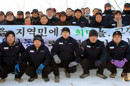 이날 열린 해맞이 행사는 이유일, 박영태 공동관리인을 비롯하여 김규한 노조위원장 등 노사 대표 및 임직원 등 200여명은 일출 시간에 맞춰 새벽 6시 30분부터 부락산(경기도 평택시 소재) 등산을 시작으로 새해의 힘찬 발걸음을 내디뎠다. 임직원들은 부락산 정상에서 힘차게 솟아 오르는 해를 맞으며 쌍용자동차 경영정상화 염원과 새로운 각오를 다지는 파이팅을 외치고, 서로 새해 인사를 건네며 건강과 안녕을 기원했다. |