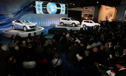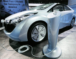 미국 디트로이트시 코보 센터에서 개막한 ‘2010 북미 국제 오토쇼’에서는 단연 소형차들이 눈길을 끈다. 이와함께 친환경 하이브리드카들이 강세를 보이고 있다. 미국의 시장 분석가들은 “올해 미국 시장에서 소형차 비중이 23%로 역대 최고치를 기록할 것”이라며 “2013년에는 30%에 달할 전망”이라고 말했다. 2004년만 해도 미국에서 소형차 비중은 14%에 불과했다. 포드는 올해 말 출시할 예정인 소형차 ‘포커스’를 출품했다. GM은 시보레 브랜드의 소형차로 ‘크루즈’(라세티 프리미어), ‘스파크’(마티즈 크리에이티브), ‘아베오’(젠트라)를 전시했다. GM은 또 올해 말 미국에 출시할 하이브리드카 ‘볼트’의 가격을 발표했다. 당초 4만 달러가 넘을 것으로 전망됐으나 미국 정부의 7500달러 친환경 보조금 덕분에 기본형이 3만 달러(약 3400만원)로 결정됐다. 지난해 이탈리아 피아트그룹에 인수된 크라이슬러는 연말께 1.1∼1.3L 엔진을 단 소형차 ‘500’을 내놓는다. 현대자동차가 디트로이트 모터쇼에 플러그인 하이브리드 컨셉트 카 ‘블루 윌(Blue-Will)’을 전시했다. 플러그인 하이브리드 자동차는 외부 전원을 이용해 충전할 수 있는 장치를 탑재했다. 배터리가 충전돼 있을 때는 모터를 구동시켜 전기차 모드로 주행하고, 배터리가 소진되면 엔진과 모터를 동시에 구동하는 하이브리드 모드로 주행한다. |