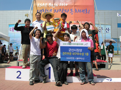 이번 대회의 종합우승인 KSAE Grand Prix (지식경제부 장관상)에는 한양대학교의 “RACE2”팀이 수상했다. 경주부문 내구우수상 (군산시장상)에는 “한밭대학교 Team Miracle”팀의 수상하였다. 신기술 부문에는 숭실대학교 “SSARA”팀이, 디자인 부문에는 부산정보대학 “FMC”팀이 수상했다. 이번 대회에는 총 2,200여만원의 상금과 부상을 수여하였으며, 어려운 여건에도 불구하고 대회에 참가하는 팀들에게 엔진을 저가로 공급하여 참여를 독려하였고, 참가팀 지원금을 확대하여 팀당 최대 50만원씩 지급하였다. 또한 본 행사 외에 GM대우자동차 레이싱팀의 레이싱 시범과 아주자동차대학의 포뮬러카와 튜닝카 전시, 지도교수 번외경기 등 다양한 부대행사도 함께 진행되어 대회의 흥미를 더했다. |