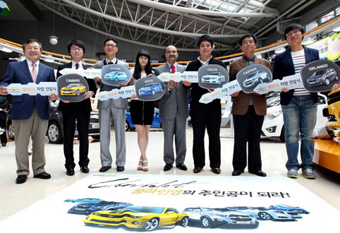 한국지엠은 지난 3월, GM의 글로벌 전략 브랜드 쉐보레를 도입했으며, 그 이후, 내수판매 실적이 크게 신장됐다고 밝혔다. 도입 첫 달인 3월에는 내수 판매대수가 전년 대비 30%나 늘었고, 3월부터 5월까지 3개월간 내수 실적은 전년 동기 대비 23.2% 증가하며 국내시장에 성공적으로 안착했다. 이와 관련, 한국지엠은 8일, 쉐보레 브랜드의 출범 100일과 국내시장 안착을 축하하고자 KTX 용산역 쉐보레 테마라운지에서 쉐보레 브랜드 출범 이벤트인 ‘쉐보레, 풀라인업의 주인공이 되라’ 당첨 고객에게 경차 스파크, 소형차 아베오, 준중형차 크루즈, ALV 올란도, SUV 캡티바, 스포츠카 카마로 각 1대씩 총 6대의 차량을 경품으로 전달하는 행사를 가졌다. 쉐보레 출범을 맞아 지난 3월부터 5월까지 온라인을 통해 진행된 이번 이벤트에는 총 19만여 명이 응모, 새 브랜드에 대한 뜨거운 관심이 집중됐다. 이 날 시상식에는 한국지엠 판매•A/S•마케팅 안쿠시 오로라(Ankush Arora) 부사장이 참석, 당첨을 함께 축하했다. |