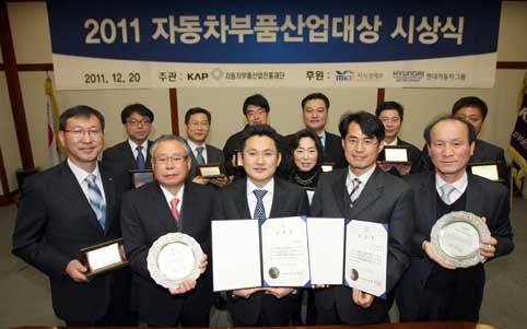 자동차부품산업대상은 자동차부품산업의 발전과 경쟁력 제고에 공로가 큰 기업과 개인을 발굴, 격려하기 위해 자동차부품산업재단이 지난 2003년 제정하 였다. 올해 9회째를 맞는 시상식은, 한해동안 완성차와 부품업체간 대중소기업 상생협력 노력의 결과를 공유하고, 자동차부품산업 발전의 중요성에 대한 인식을 확산시키는 역할을 하고 있다. 올해는 단체, 개인, 모범근로자 3개 부문에 걸쳐 12인에 대해 지식경제부 장관상, 현대자동차그룹 회장상, 자동차부품산업진흥재단 이사장상이 수여되었다. 지식경제부 장관상은 ▲ 단체부문 ㈜일지테크(대표이사 구준모), ▲ 개인부문 ㈜센트랄DTS 이동진 부장이 수상하였고, 현대자동차그룹 회장상은 ▲ 단체부문 ㈜세원물산(대표이사 김성기), ▲ 개인부문 ㈜유니크 노의동 부장, 인지컨트롤스㈜ 이명헌 수석연구원이 각각 수상하였다. 이번 자동차부품산업대상은 사내외의 추천을 받은 총 47건의 단체와 개인이 응모했으며, 자동차업계, 정부로 구성된 실무위원회의 1차 심의, 공적내용의 현장실사, 학계, 언론계, 자동차업계, 정부로 구성된 심의위원회의 2차 심의를 거쳐 총 12인이 선정되었다. 재단은 올해 자동차부품산업인들의 사기진작을 위해 예년보다 포상수를 늘리고 보다 많은 공로자의 발굴에 힘썼다. 자동차부품산업대상 수상자에게는 상장과 함께 단체 5백만원, 개인 2백만원의 상금이 부상으로 수여된다. |