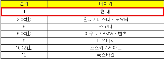 현대자동차(회장 정몽구)는 유럽 최고 권위의 자동차 전문지인 아우토빌트誌가 실시한 ‘2011 품질만족도 조사’에서 2년 연속 1위를 차지했다고 23일 밝혔다. 특히, 현대차는 벤츠, BMW, 폴크스바겐, 도요타, 혼다 등 독일 현지 및 일본 메이커들을 제치고 평가대상인 20개 자동차 업체 중 1위에 올라, 2010년에 이어 2년 연속으로 자동차의 본고장인 유럽에서 품질 경쟁력을 확고히 인정받았다. 아우토빌트誌의 ‘품질만족도 조사’는 2001년부터 실시되었으며 독일 내 판매 중인 자동차 메이커들의 차량을 대상으로 품질 조사, 10만km 내구품질평가 및 분해조사, 정비서비스, 리콜, 정기검사 결과, 보증 등 전반적인 품질 조사를 종합해 결과를 발표한다. 현대차 관계자는 “보수적인 고객층이 두터운 독일 자동차 시장의 평가에서 현대차가 2년 연속 1위를 받으면서 현대차의 브랜드 이미지를 한 차원 끌어올릴 수 있는 발판을 마련했다”며 “앞으로도 각 지역별 운전 환경을 분석한 차별화된 품질 경쟁력 확보를 위해 지속적으로 노력을 기울이겠다”고 말했다. 현대차는 작년 아우토빌트誌 품질만족도 조사에서 조사 이래 최초로 1위에 등극, 현지에서 ‘현대차는 유럽 자동차 메이커의 벤치마킹 대상이 될 정도로 성장했으며 유럽 메이커는 이제 도요타가 아닌 현대차를 가장 위험한 경쟁자로 여기고 있다’고 언급한 바 있다. |