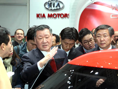정 회장은 현대기아차 전시관을 찾아 전시된 차량에 직접 탑승해 품질과 디자인 등을 살펴 보는등 깊은 관심을 표시했으며 이어 경쟁사의 전시장도 둘러보며 글로벌 자동차업계의 신기술 등 동향을 파악했다. 정 회장은 특히 세계최초로 선보인 기아차 신형 "씨드"에 대한 현지 언론과 소비자들의 반응을 주의 깊게 살피는 한편 아우디 폴크스바겐 토요타 BMW 전시장도 방문했다. |