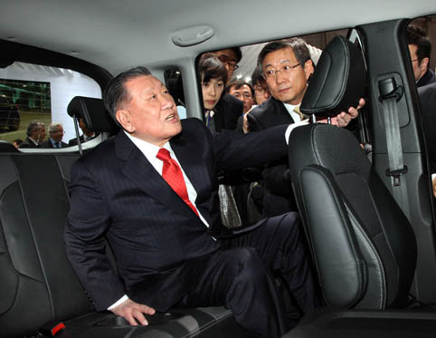 ▲아우디 A1 1.4T, ▲포드 포커스 ST, ▲BMW 320D, ▲벤츠 A-CLASS, ▲폴크스바겐 골프UP, ▲기아차 트랙스터, 씨드, 레이EV 등에 많은 관심을 표명했다. 정 회장은 경쟁사 차량을 살펴보며 "BMW는 차제에 알루미늄 소재를 많이 사용하지 / (벤츠 A-CLASS 살펴보며) 엔진커버는 소음방지 및 열과 관련있다 / 벤츠 차체는 알아주지 / (기아 트랙스터 살펴보며) 이 차에도 터보차저가 탑재되지? 디자인이 좋군. 타이어가 넓으면 바람저항이 심할 텐데 / (씨드 후속 엔진룸 살피며) 엔진룸에 이렇게 공간이 있어야 환기가 잘 된다 / (레이 전기차 탑승해보며) 공간이 넓군. 내 키가 작은편이 아닌데 불편함이 없다" 는 등의 코멘트를 했다. 정 회장은 이에앞서 6일(현지 시간) 유럽 주요 대리점 만찬에 참석하고 유럽지역 사업현황 회의를 주재했으며, 이탈리아 최고 권위의 자동차전문지인 인터오토뉴스가 선정 수여하는 "2011년 글로벌 최고 경영인상"을 수상했다. ▶정몽구 회장 귀국 한편 정몽구회장은 8일 귀국, 소감을 통해 "딜러들이 보자고 해서 만나고 판매에 대해 많은 얘기를 했다"고 말하고 "제네바 모터쇼가 한정된 공간에 메이커들이 다 모여 있어서 참고할 것들이 많이 있었다. 딜러, 소비자 등에 대해서 많이 느꼈다"고 말했다. 그는 이어 올해 유럽 판매 목표는 달성할 수 있느냐는 질문에 대해 "아직 10개월이나 남아서 이야기하기엔 이르다"고 말했다. |