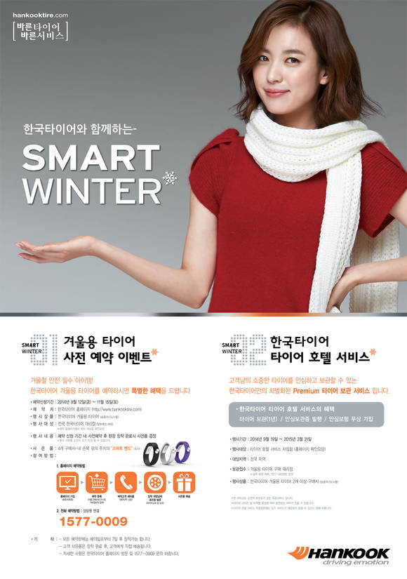 글로벌 선도 타이어 기업 한국타이어(대표: 서승화)가 겨울철 안전운전을 지원하는 스마트케어의 일환으로 ‘겨울용 타이어 사전 예약 이벤트’를 9월 12일부터 11월 15일까지 진행한다.
