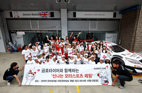 금호타이어(대표: 김창규)는 지난 12일 영암 코리아 인터내셔널 서킷에서 광주지역 초등학생들을 대상으로 모터스포츠 관련 교육 및 경기장 체험 등의 ‘교육기부’ 활동을 실시했다고 밝혔다.