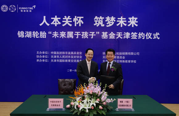 금호타이어(대표: 김창규)는 11일 중국 톈진시 북진구 특수교육학교에서 '미래는 어린이 세상' 기금 기부 협약식을 가졌다.