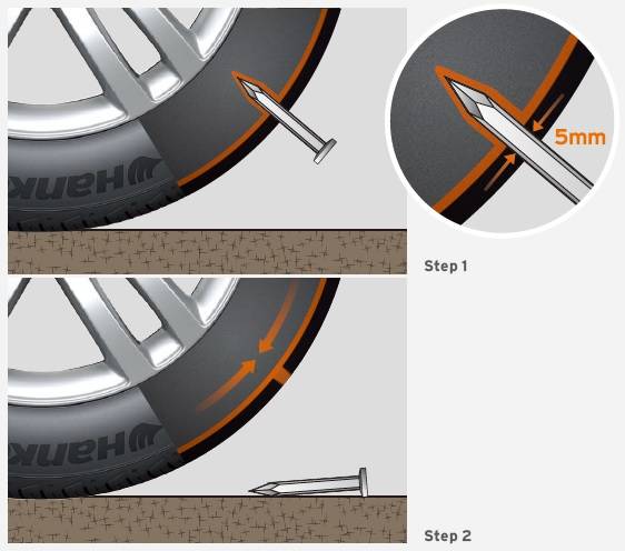 한국타이어의 실가드 타이어는 외부 충격으로 인해 펑크가 발생하더라도