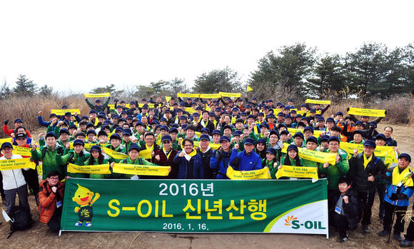 S-OIL 나세르 알 마하셔 CEO는 16일 경주 토함산에서 올해 입사한 신입사원들을 비롯한 임원 및 부장급 이상 직원 200여 명과 함께 등반 행사를 갖고 희망찬 새해 각오를 다졌다.