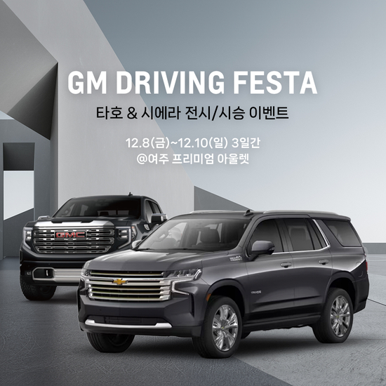 제너럴 모터스(GM)는 정통 아메리칸 감성의 크로스오버, SUV와 픽업트럭을 고객이 직접 보고 체험할 수 있는 ‘지엠 드라이빙 페스타’를 개최한다고 밝혔다.
