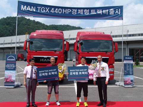 세계적인 상용차 생산업체인 만트럭버스코리아(대표: 틸로 헬터)가 오늘 충남 추부 출고장에서 고연비 ‘TGX 440 경제형 트랙터’와 ‘TGX 540 프리미엄 라이온 트랙터’를 출시했다.