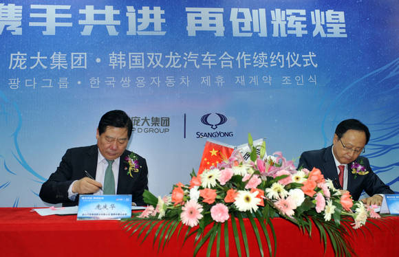 쌍용자동차(대표: 이유일)가 지난 2011년 중국 시장에 본격적으로 재 진출하며 맺었던 중국 최대 자동차 판매 전문 기업인 방대집단과의 판매 대리 계약이 만료됨에 따라 계약 연장을 체결했다고 21일 밝혔다. <?XML:NAMESPACE PREFIX = "O" />