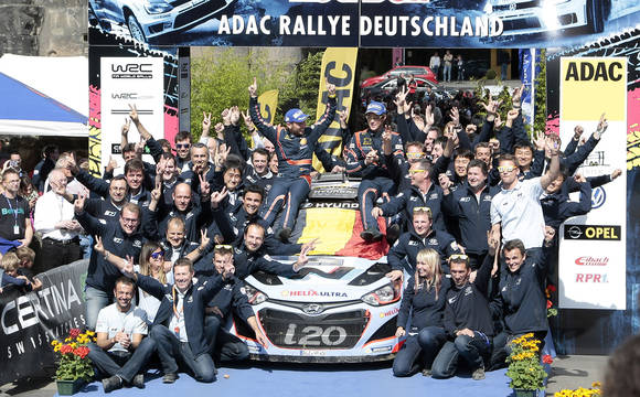 현대자동차는 지난 8월 22일부터 24일(현지시간)까지 열린 ‘2014 월드 랠리 챔피언십’의 독일 랠리에서 드라이버 부문 1, 2위, 제조사 부문 1위에 오르며 출전 첫 해에 첫 우승을 달성했다고 밝혔다.