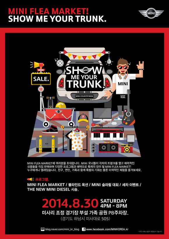 프리미엄 소형차 브랜드 MINI는 여름 프로모션인 ‘Show Me Your Trunk’ 이벤트의 일환으로 MINI팬들의 나눔과 축제의 장인 ‘MINI 플리마켓’ 행사를 8월 30일 개최한다.