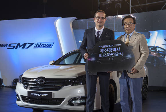르노삼성자동차(대표: 프랑수아 프로보)는 4일 'New SM7 Nova 1호차'를 부산시 의전차량으로 서병수 부산광역시장에게 전달하는 행사를 가졌다. <?XML:NAMESPACE PREFIX = "O" />