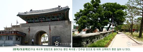 진주성은 진주의 젖줄인 남강을 끼고 남강변 절벽 위에 위엄 있게 자리했다. 그 역사는 삼국시대로 거슬러 올라간다. 원래 토성이던 것을 1379년 고려 말 우왕 때 석성으로 개축했다. 진주성은 1592년 임진왜란 진주대첩 당시 진주목사였던 김시민 장군이 군사 3,800여 명을 이끌고 왜군 2만을 물리친 것으로 유명하다.
