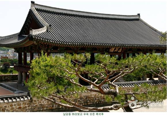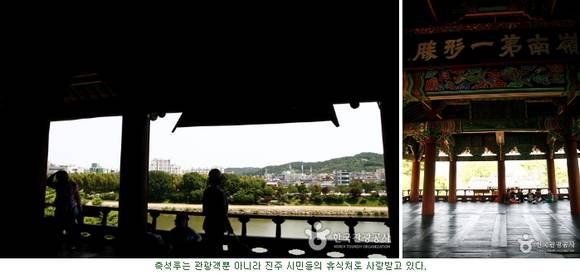 촉석루는 예나 지금이나 빼어난 풍광으로 인해 많은 사람들의 사랑을 받고 있다. 바위 위에 우뚝 선 누각이라 하여 촉석루다. 촉석루에 올라서면 한여름에도 더위를 못 느낄 만큼 시원한 강바람이 불어와 지친 몸을 어루만져주고 탁 트인 풍경이 마음까지 편안하게 해준다. 미국 CNN이 선정한 ‘한국 방문 시 꼭 가봐야 할 곳 50선’에 뽑히기도 했다.
