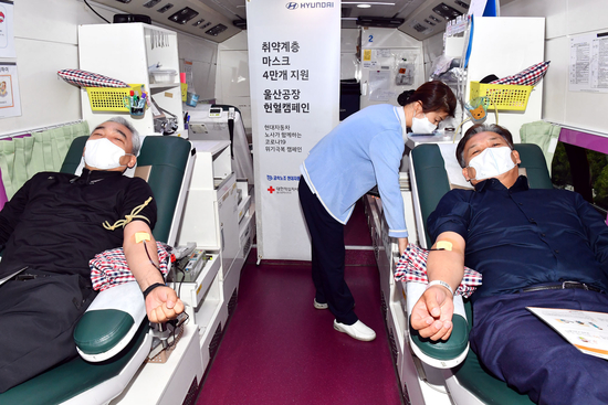 이날 헌혈 행사에 앞서 현대자동차 노사는 홍보관에서 코로나19 감염 확산을 막기 위해 지역