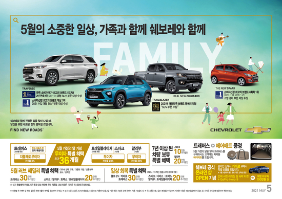 쉐보레가 5월 가정의 달을 맞아 무이자 할부 혜택 및 캠핑 용품 제공 등 특별한 혜택을 제공한다고 밝혔다.