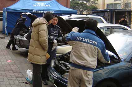 내 발이 되어주는 자동차에도 관심을 두어 보다 따스하고 편안한 겨울을 보내도록 하자. ▶시동장치 배터리는 시동모터가 작동되는 소리를 가지고 간단히 성능을 판별할 수 있는데 작동음이 약하거나 한두 번 정도 머뭇거리다 작동된다면 배터리 단자의 오염 등을 점검해야 한다. 일반적으로 자동차 배터리는 2~3년 정도를 수명으로 하는데 정확하게는 약 5분 정도 소요되는 ‘크랭킹 전압강하시험’을 통해 배터리의 교환여부 판단을 정확히 할 수 있다. 시동이 지연되면 조급해진 마음에 대부분 자동차 키를 짧게 자주 돌린다. 하지만 이런 시동방법 보다는 느긋하게 15초 간격으로 7~10초 정도 길게 시동을 거는 것이 시동성과 관련장치 보호에 훨씬 도움이 된다. ▶점화장치 기온이 떨어지면 점화장치기능도 떨어져 연소실에 제공하는 점화플러그의 불꽃이 약해질 수 있다. 연소실의 불꽃을 공급하는 일반 니켈 점화플러그의 경우 매 2만~4만km정도에 한번씩 점검하고 전극이 오염되어 불꽃이 약하면 고압 케이블과 함께 교환해야 한다. 하지만 V6 등의 엔진에 적용되는 백금이나 리듐 플러그의 경우는 그 수명이 10만km, 16만km이므로 각각 취급설명서를 확인해 관리하는 것이 좋다. ▶부동액과 냉각장치 일반적으로 장수명 부동액은 수명이 5년 혹은 10만km로 저공해 물질과 고성능 방청제를 사용해 방청효과를 증대시켜 내구성이 향상된 제품이다. 원액의 부동액은 연수인 수돗물과 절반씩 섞어 사용해야만 하는데 자칫 일반 부동액과 혼합해 사용할 경우 성능이 떨어져 보통 부동액과 같이 2년으로 수명이 줄어드므로 주의해야 한다. 초기 부동액 수명이 지난 차량인 경우는 부동액 교환주기를 다르게 적용하는데 매 2년 혹은 4만km에 부동액을 교환하도록 한다. 냉각수가 새는 경우는 고무호스 주변에 흰색의 앙금 흔적이 남는데 호스나 클램프를 교환한다. 신규로 부동액을 주입할 때는 기존 부동액을 완전히 배출하고 새로운 부동액과 수돗물을 절반씩 섞어 주입하는데 일반 승용차의 냉각수 총 주입양은 대부분 6ℓ 정도이니 참고한다. ▶냉난방장치 일반적으로 승용차는 시동 후 약 10~15분 이내에 히터를 켜면 더운 바람이 나오기 시작한다. 20분 이상 지나도 더운 바람이 나오지 않으면 엔진의 냉각수 온도를 신속히 올리는 써머스타트(정온기)에 고장이 있는 것이니 신품으로 교환하도록 한다. 대부분의 차량은 블로워 모터 입구에 에어컨과 함께 사용하는 ‘공조장치용 공기필터’가 장착되어 있는데 매 1만5천km가 되면 오염정도가 심각하니 반드시 교환하도록 한다. 겨울에도 2주에 한번 정도는 에어컨을 가동시키는 것이 좋다. 에어컨 장치 내부에 냉매를 순환시켜 기계의 부식을 방지하고 고무제품의 경화를 예방해 공조장치의 수명을 연장시키기 때문이다. ▶등화장치 동절기에는 안개가 잦아 전조등이나 안개등 같은 등화장치 사용이 많으므로 미리 살펴주는 것이 안전하다. 어두운 전구는 수명이 다된 것이니 신품으로 교환하고 전조등의 조사방향이 규정에 맞는지 확인하도록 한다. 타 운전자에게 예방운전을 유도하는 미등과 제동등도 겨울철에는 대형 연쇄 충·추돌사고를 막아주는 중요한 신호이니 특히 철저히 점검한다. ▶스노타이어와 스노체인의 관리 마모가 많은 타이어는 눈길이나 빗길에서 매우 미끄러워 사고발생 가능성이 크므로 접지면 마모한계점을 확인하고 한계점 이상으로 닳은 타이어는 즉시 교환한다. 특히 눈이 많이 내리는 지역을 운행하는 차량은 미리 스노타이어를 장착하는 것이 안전하다. 스노체인은 금속뿐 아니라 우레탄 재질로 된 종류가 있으며 초보운전자들도 간편히 장착할 수 있는 제품들이 시중에 유통되고 있으니 적절한 제품을 선택하도록 한다. 신차구입 등으로 차종이 변경된 경우 타이어 규격 차이로 기존의 스노체인이 다를 수 있으므로 반드시 호환성 여부를 살핀 뒤 사용하도록 한다. ▶연료장치별 점검 - 가솔린차량 : 연료필터에는 이물질과 수분이 다량 유입되어 기온 강하시 결빙으로 인해 연료공급 장애가 일어날 수 있다. 따라서 매 6만km에는 연료필터를 신품으로 교환한다. 시동모터의 작동은 문제 없으나 초기에만 시동이 지연되는 차량은 연료의 기본잔압 유지가 불량한 것으로 연료잔압유지 레귤레이터나 연료펌프 혹은 인젝터 등의 이상 가능성이 크니 이 부위를 세밀히 점검한다. ◇ 디젤차량 = 디젤차량은 특별히 각 기통수 별로 장착되어 있는 예열기가 모두 정상적으로 작동되어야만 시동이 양호하다. 예열시 시동키를 2단까지 돌려 예열등이 노란색에서 초록색으로 바뀌거나 꺼지는 순간에 바로 시동을 걸어야 시동성이 유리하다. 아주 혹한기에는 이런 예열과정을 3회 정도 반복한 뒤 시동하면 아무리 추운 날씨라도 쉽게 시동할 수 있다. 경유차량은 수분이 유입되기 쉬워 연료필터 여과지를 매 3만km 마다 교환하는 것이 시동성을 위해 매우 유리하다. ◇ LPG와 LPI차량 = LPG는 연료특성상 -15℃ 이하로 떨어지면 연료의 활성화가 약해 시동성이 떨어지므로 동절기에는 가급적 봄베를 따뜻하게 보온하는 일이 필요하다. 또한 LPG 차량은 타르 누적시 
