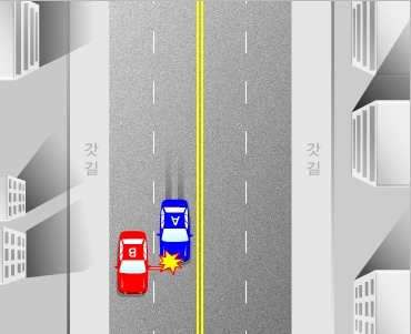 -장소: 경기 용인시 처인구 포곡읍 ○ 청구인 주장(A) 청구인차량이 용인에서 광주방면으로 진행하다 사고장소에 이르러 우회전하기위해 우회전차 로(편도4차로중 4차로) 진행 중, 피청구인차량(버스)에서 3차로와 4차로사이에 승객이 갑자 기 뛰어내려(버스기사가 문을 열며 하차 요구했음) 청구인차량이 승객을 충격하여 피해자가 부상한 사고이다. 피청구인차량(버스) 운전자는 승객을 정해진 버스정류장에 내려주어야 하며 부득이 정류장이 아닌 곳에서 내려주게 되더라도 뒤에서 오는 차량이 있는지 확인하고 안전한 상태에서 내려주어야 할 주의의무가 있음에도 이를 위반하여 사고가 발생한 것이다. 따라서 피청구인의 과실비율이 90% 이다. ○ 피청구인 주장(B) 편도 3차로중 2차로에서 신호대기중 승객을 하차시키고 출발하는데 청구인차량(탱크로리)이 승객을 충격한 사고이다. 피청구인 차량은 승객요청에 의해 비상등을 켜고 승객을 하차시켰고 그후 10여미터 진행 중 사고가 발생한 것으로 승객하차시 청구인차량은 멀리 보였으며 청구인 차량이 과속하였다. 따라서 피청구인측 과실비율이 20% 인정된다. ○ 기타 입증자료 < 교통사고사실확인원> 청구인 차량이 용인방면에서 광주방면으로 진행하다 사고장소에서 이르러 우회전하기위해 우회전차로를 진행중 피청구인 버스에서 내리던 승객 충격한 사건. ★결정이유: 피청구인측이 승객 승하차시 주의할 의무를 해태한 것이 사고발생에 결정적 원인을 제공하였고 청구인측도 전방주시 및 안전운전 의무를 소홀히 한 과실이 있다. ★과실비율: 청구인(A) 40% / 피청구인(B):60% |