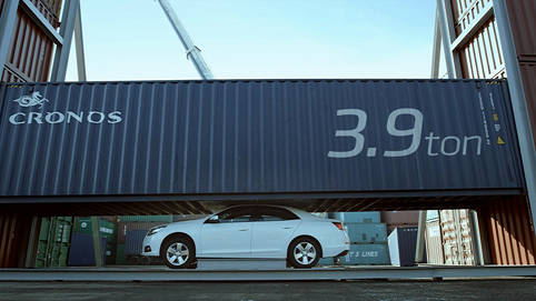 한국지엠의 글로벌 중형 세단 '말리부'가 대형 컨테이너 4개, 16톤의 무게를 이겨냈다.