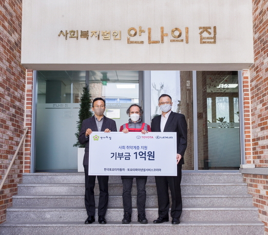 한국토요타는 지난 2005년부터 임직원들과 함께 안나의 집 급식 봉사활동 참여, 성금 지원, 연말에는 ‘토요타 주말농부’가 직접 담근 김치를 기부하는 사랑의 김장 나눔 등 안나의 집에 꾸준한 지원을 이어오고 있다.
