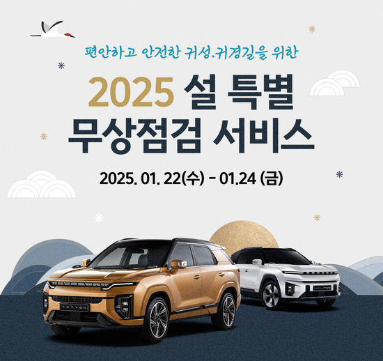 KG 모빌리티(KGM)가 설 명절을 맞아, 장거리 운행으로 고향을 찾는 고객들에게 편의 제공을 위해 ‘2025년 설 특별 차량점검 서비스’를 시행한다고 21일 밝혔다.
