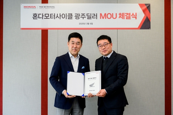 혼다코리아(대표이사 이지홍)가 지난 6일 전라남도 광주 지역 모터사이클 공식 딜러로 혼다 모터사이클 안양점 (대표 국봉석)을 선정하고 딜러 계약을 위한 양해각서(MOU)를 체결했다고 7일 밝혔다.