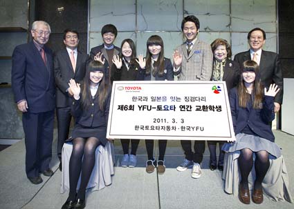 한국토요타자동차와 한국 YFU는 한일 양국 간의 상호 이해를 돕기 위한 취지로 지난 2001년부터 교환 학생 프로그램을 해마다 실시하며 학자금 및 체류비용 전액 지원해오고 있다.