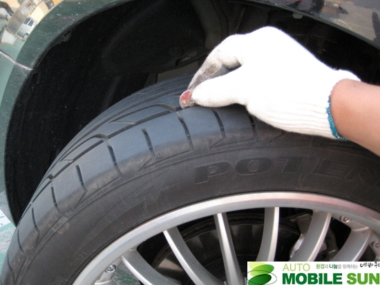 못 같은 이물질이 타이어에 박혀있는지를 점검한다. 외관상 이상이 없는지 확인 후 타이어