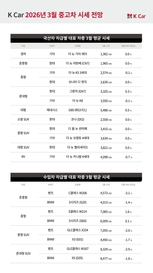 국내 중고차시장에서 국산차와 수입차 시세는 각각 0.3%, 0.9% 소폭 하락한 반면, 실용성과 가격 경쟁력을 갖춘 소형 SUV는 상승세를 보이며 소비자 수요가 집중되고 있다고 26일 밝혔다. 이는 국내 직영중고차 플랫폼 기업 K Car(케이카)가 국내 중고차 시장에서 유통되는 출시 10년 이내 740여개 모델을 대상으로 평균 시세를 분석한 결과이다. 신차 출고 대기로 인해 캐스퍼, 레이 등 경차의 시세 상승이 지난 해부터 이어지면서, 1,500만원~2,000만원대 소형 SUV의 인기가 늘고 있는 것으로 나타났다. 소형 SUV는 세단 대비 높은 시야와 공간 활용도가 높아 합리적인 가격으로 만족도를 높일 수 있는 선택지로 주목받고 있다. 실제로 쉐보레의 더 뉴 트레일블레이저, 트레일블레이저는 각각 3.6%, 2.5% 상승했고 르노코리아의 XM3도 1.3% 상승할 것으로 전망했다. 기아 니로(0.4%), 더 뉴 셀토스(0.2%), 현대 코나(0.3%) 등도 소폭 상승할 것으로 보인다. 다만 쉐보레 일부 차종은 직영 정비센터 운영 환경 변화의 영향을 받을 것으로 분석했다. 더 뉴 트래버스(-7.7%), 트래버스(-5.5%), 더 뉴 말리부(-4.2%), 올 뉴 말